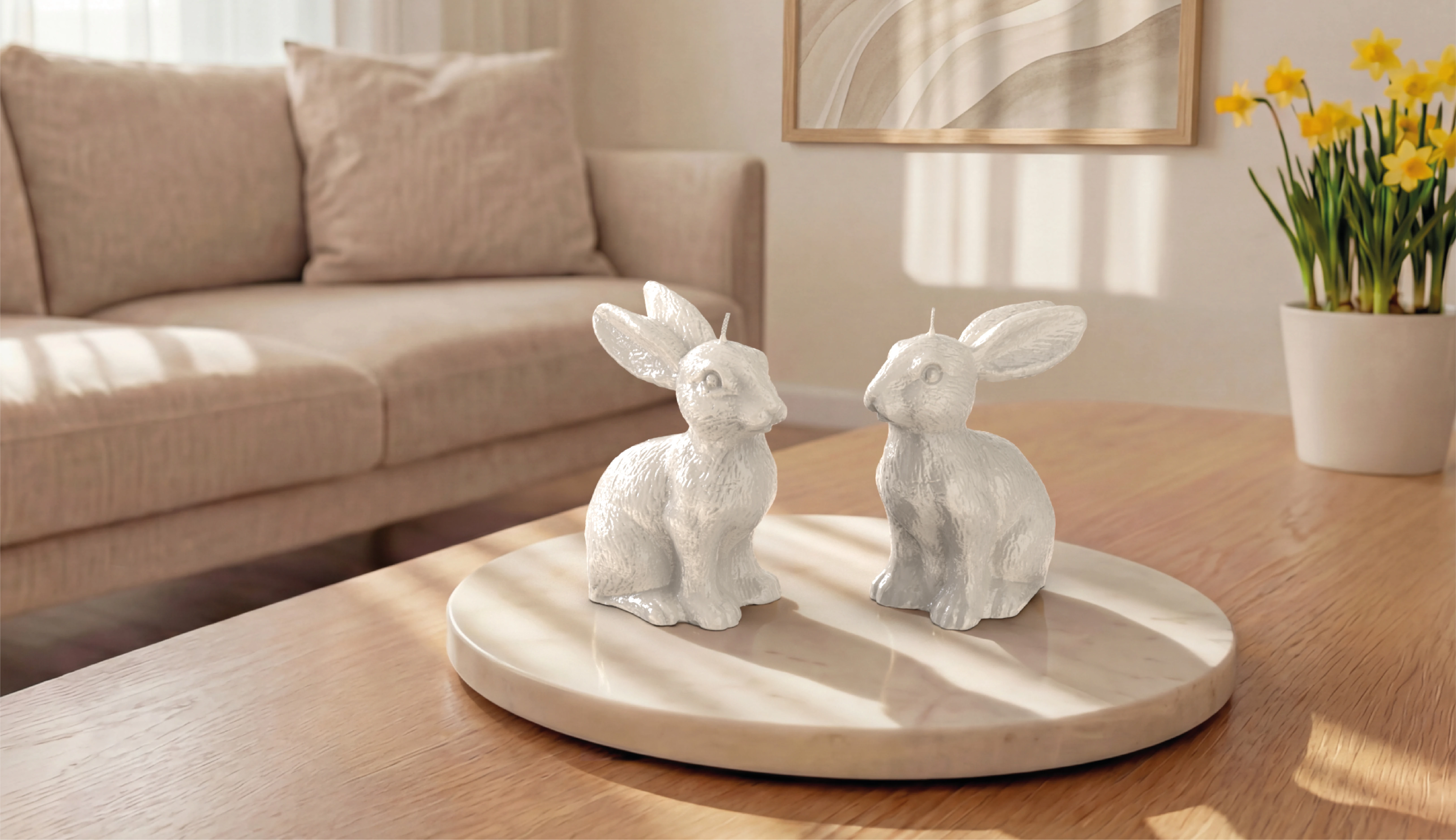 Erleben Sie ausdrucksstarke Eleganz der Objektkerze Hase klein Glanz-Lack: Die gelackten Objektkerzen überzeugen mit intensiver Farbtiefe und mit der Kombination des großen Hasens. Kräftige Frühlingsfarben und edle Naturtöne setzen markante Akzente und verwandeln Ihre Ostertafel in ein Design-Statement.