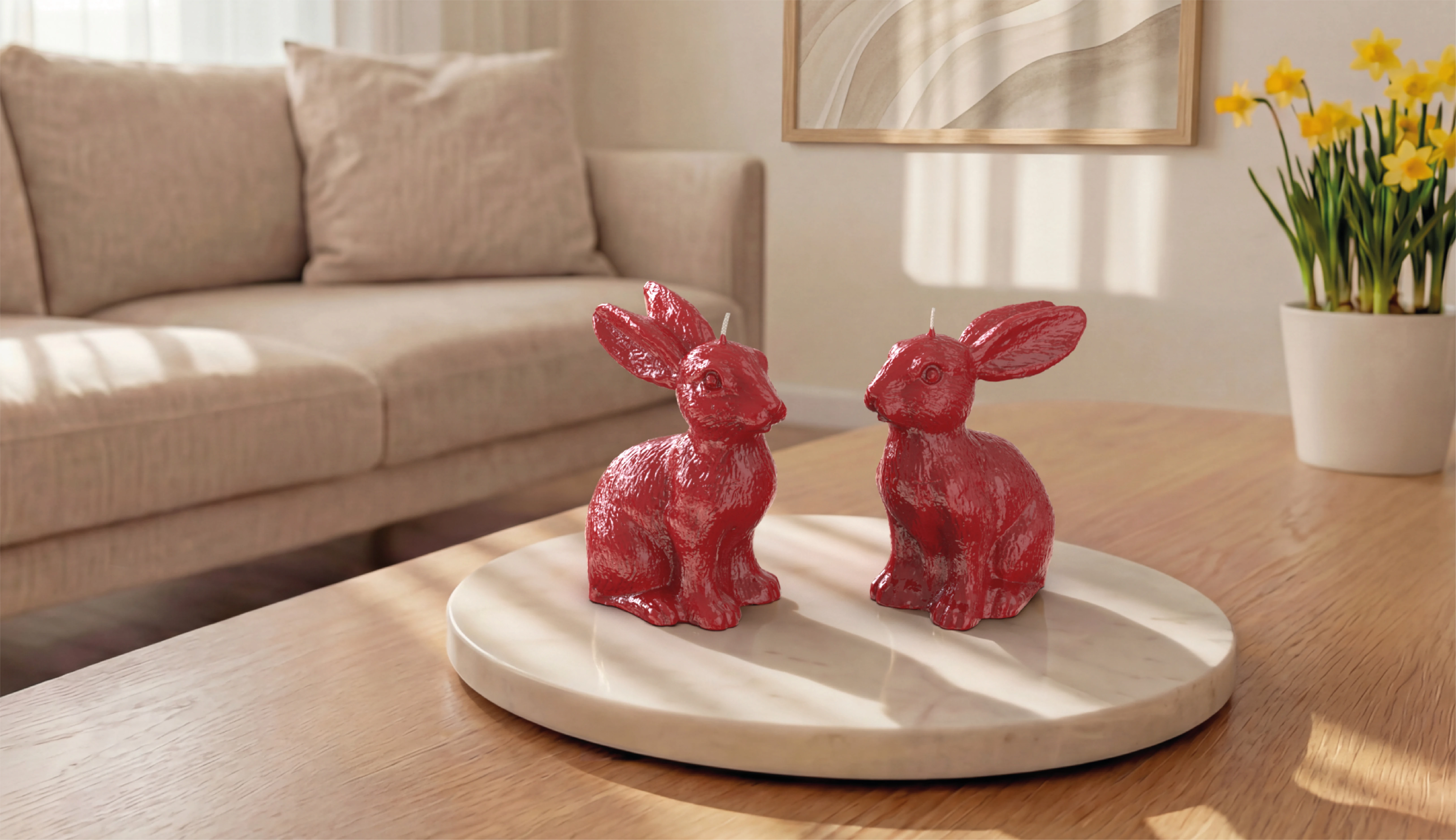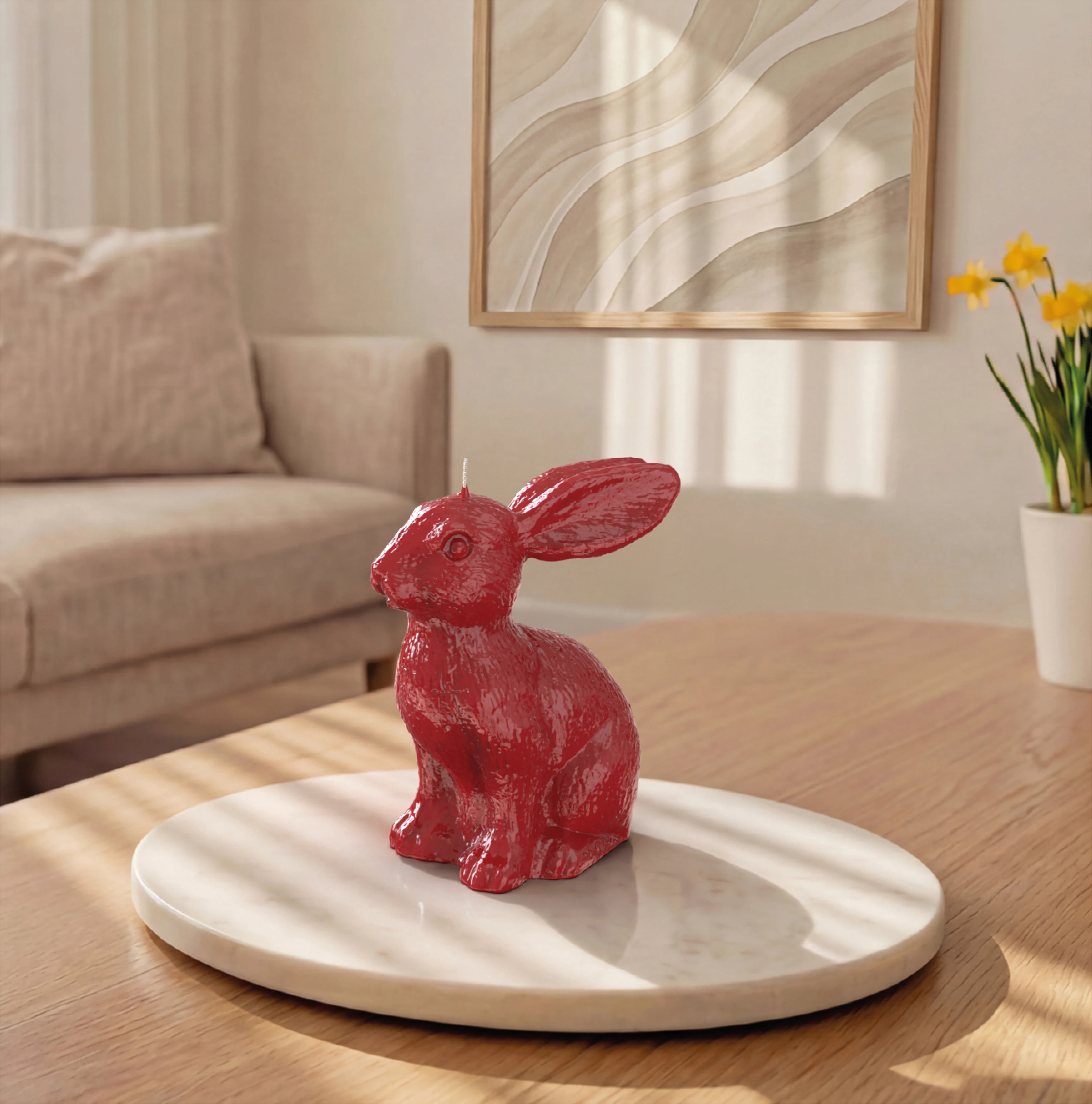 Erleben Sie ausdrucksstarke Eleganz der Objektkerze Hase klein Glanz-Lack: Die gelackten Objektkerzen überzeugen mit intensiver Farbtiefe und mit der Kombination des großen Hasens. Kräftige Frühlingsfarben und edle Naturtöne setzen markante Akzente und verwandeln Ihre Ostertafel in ein Design-Statement.