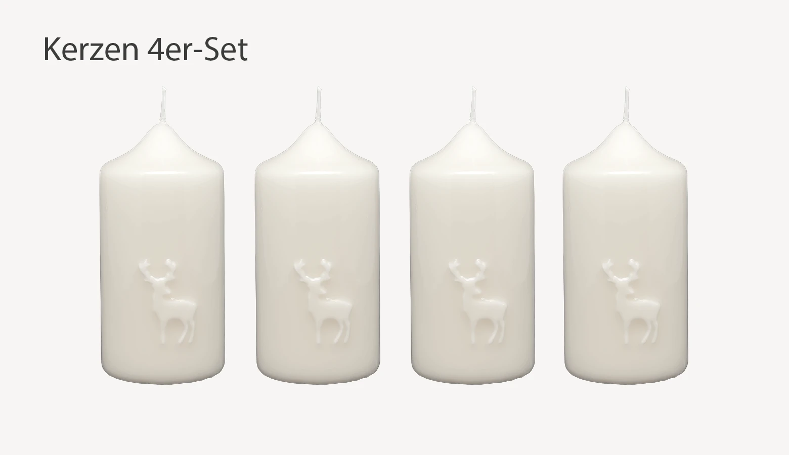 Stumpenkerze mit zartem Hirsch 4er-Set Glanz-Lack