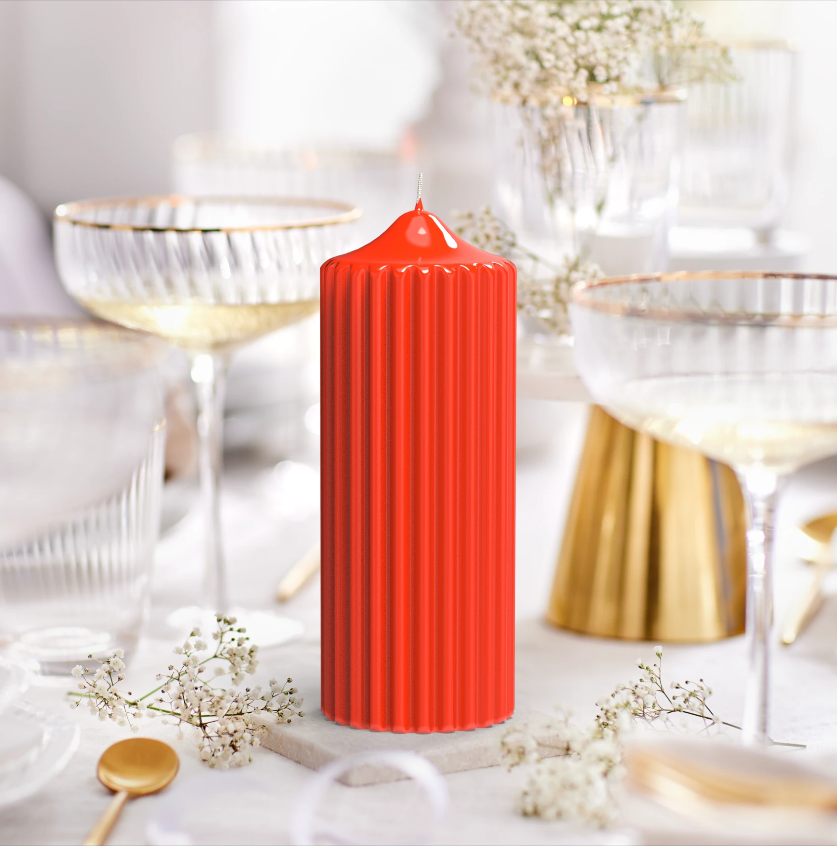 Sie ist ein glänzendes Statement unserer Engels Kerzenmanufaktur: die Rillenkerze mit edlem Glanz-Lack, elegant getaucht und lackiert. In drei Größen und modernen Farben erhältlich, strahlt sie durch ihre glatte, reflektierende Oberfläche zeitlose Eleganz aus. Aus hochwertigem Paraffin gefertigt, brennt sie langsam, ruhig und stimmungsvoll – ein dekoratives Highlight.